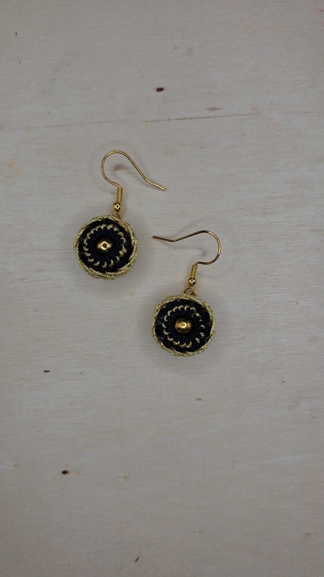 Tombez sous le charme de ces boucles dorées en acier inoxydable, perles tissées main, créations artisanales marron et doré unique sublimés par une perle centrale doré en laiton