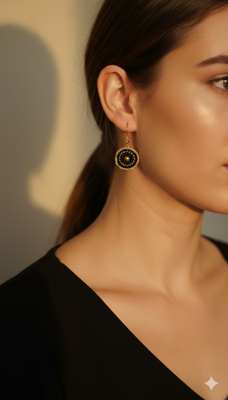 Véritables soleil de minuit, ces boucles d'oreilles marient la force de l’acier inoxydable à la délicatesse d'un tissage fait main. Entre ombre et lumière, leur cercle Doré sublime votre visage du poésie intemporelle, telle une dentelle. Précieuse et extrêmement légère.