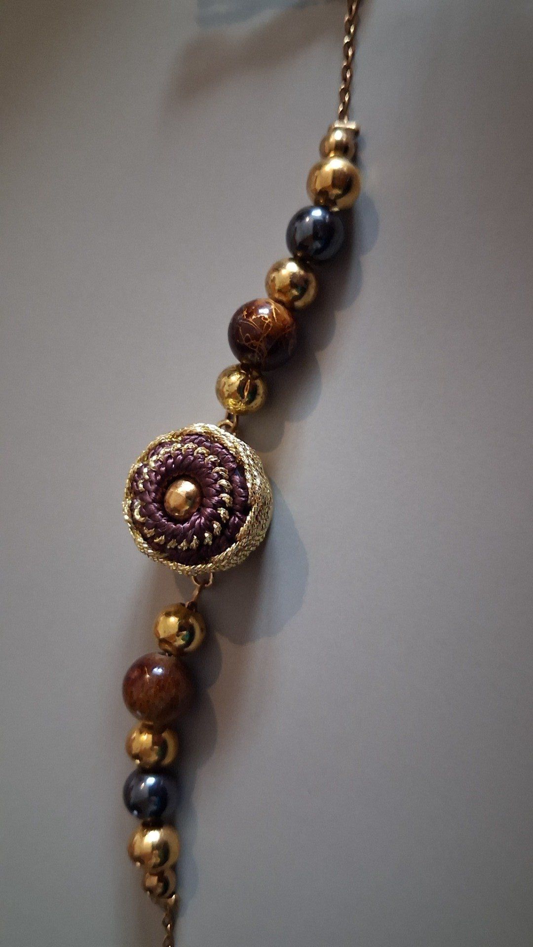 Ce bracelet élégant et artisanal mêle élégance des pierres naturelles et légèreté du laiton. En son centre, une perle tissée à la main, de couleur or et marron souligne. Un savoir-faire artisanal unique. Ce bijoux délicat extra-léger, allie parfaitement noblesse et style bohème.