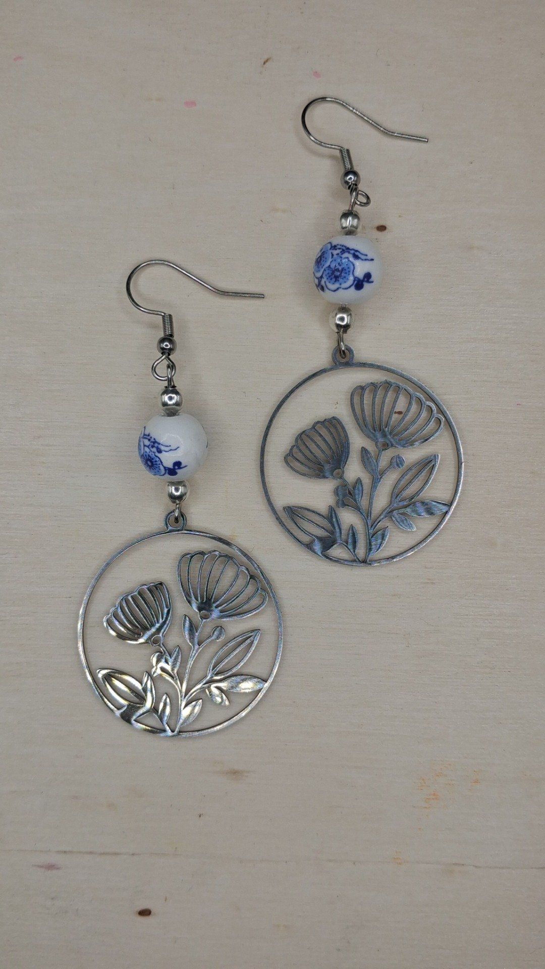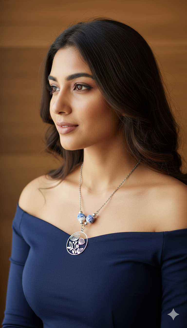 Laissez-vous charmer par l’éclat de ce collier en acier inoxydable. Des perles en céramique blanche, ornée de fleur bleu azur, rencontrent la finesse du laiton argenté. Un bijou poétique,promesse d'une élégance rafinée, et d’une touche de sérénité absolue.