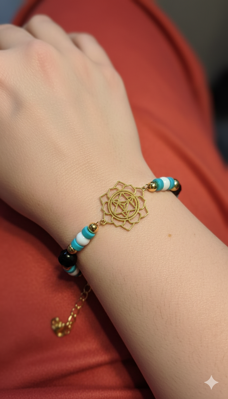 Éclat de vie au poignet. La céramique blanche s’unit à la finesse du laiton doré sur une base d’acier éternel, accompagné de perles (issues de dons à autisme landes) sauvées pour renaître. Une heure de création minitieuse pour associer ces matières et en faire ce beau bijou, a été nécessaire. Un bijou unique... Plus qu’un bijou, une promesse de lumière et de solidarité partagée.
