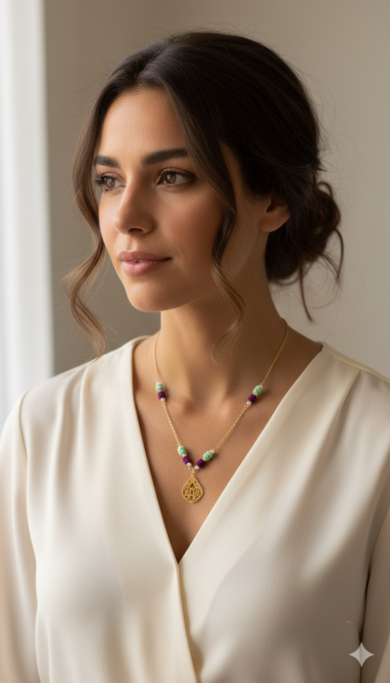 Découvrez ce magnifique collier artisanal en acier inoxydable, avec ses perles blanches en pierres naturelles. Son pendentif avec une fleur de lotus ciselé est sublimé par des perles tissées à la main, melant des nuances de vert menthe et de violet profond. Avec ce lotus, signe de sérenité, ce bijou rafiné apportera une touche de couleur et d’originalité, mais aussi soutenir une cause soutenant la neurodiversité ( violet signe de la différence, et le lotus avec un pétale violet est une partie de logo d’ecoloreak témoignant de mon soutient aux personnes autiste)