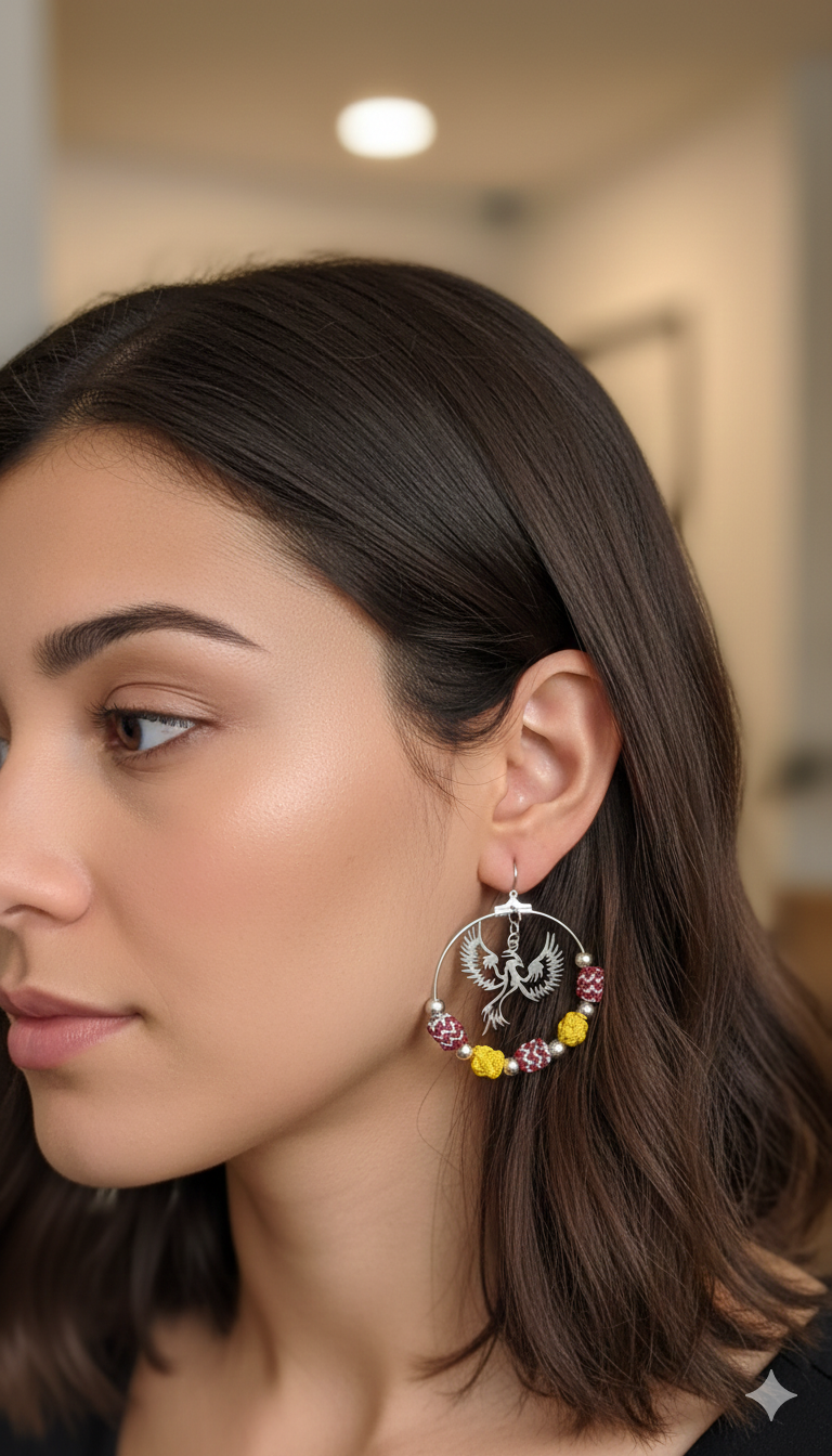 Au creux de l’acier éternel, l’oiseau de feu déploie ses ailes ciselées. Entre perles tressées à la main et éclat de braise et de reflets argentées, ces créoles célébrent une libertée radieuse. Un bijou solaire, symbole de renaissance qui danse à chacun de ses mouvements.